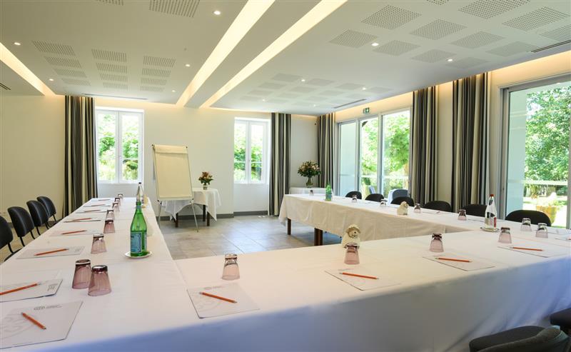 Notre salle de réunion et de séminaire entièrement rénovée en 2017 permet de recevoir jusqu’à 35 personnes. Au calme et dotée d’un accès direct sur le jardin, celle-ci est entièrement équipée.